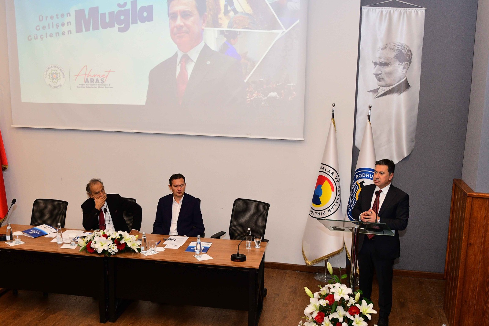 Toplantıda konuşan Muğla Büyükşehir Belediye Başkanı Ahmet Aras, yerel yönetimler, meslek odaları ve sivil toplum kuruluşlarının iş birliği içinde hareket etmesinin somut çözümler ürettiğini vurguladı.