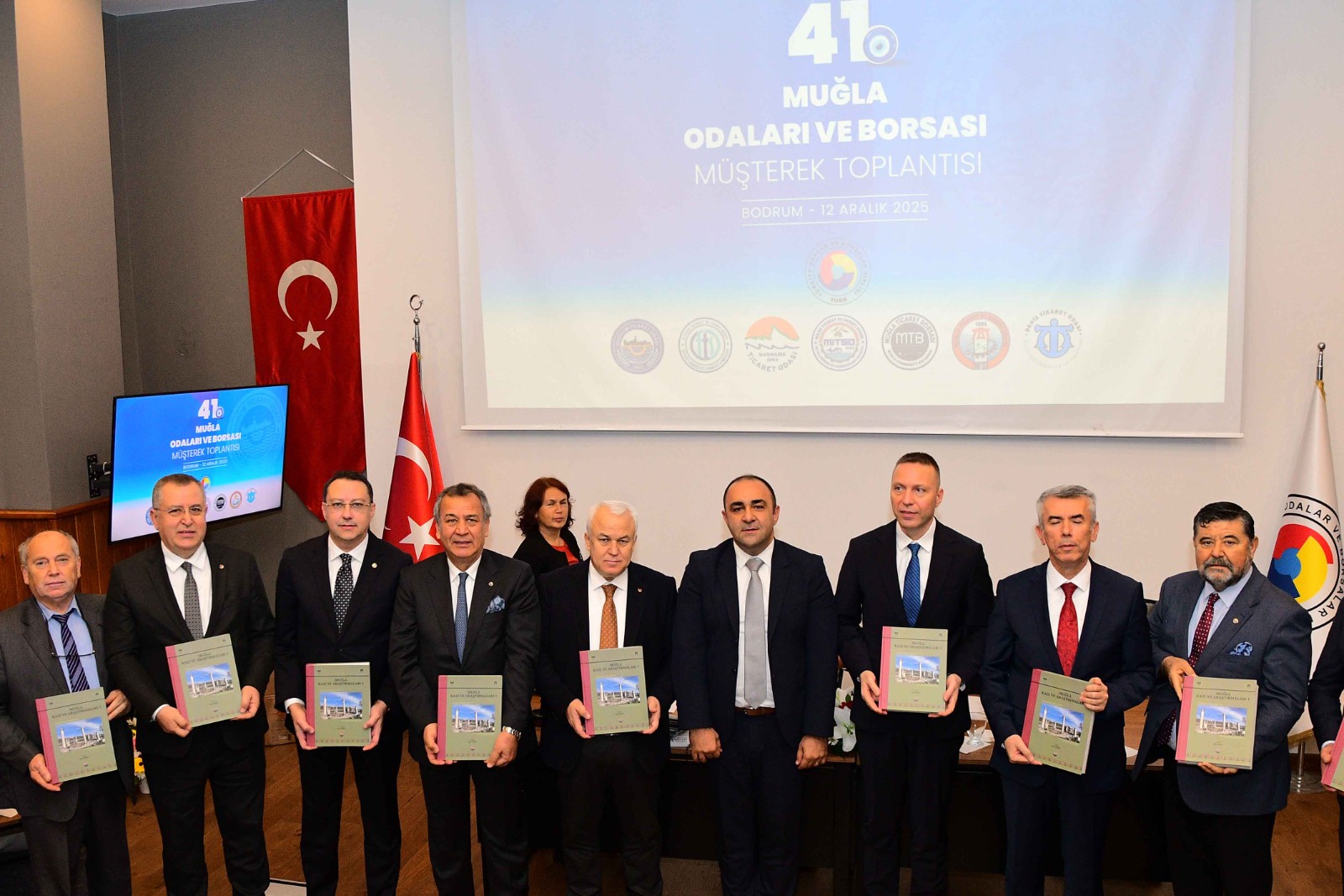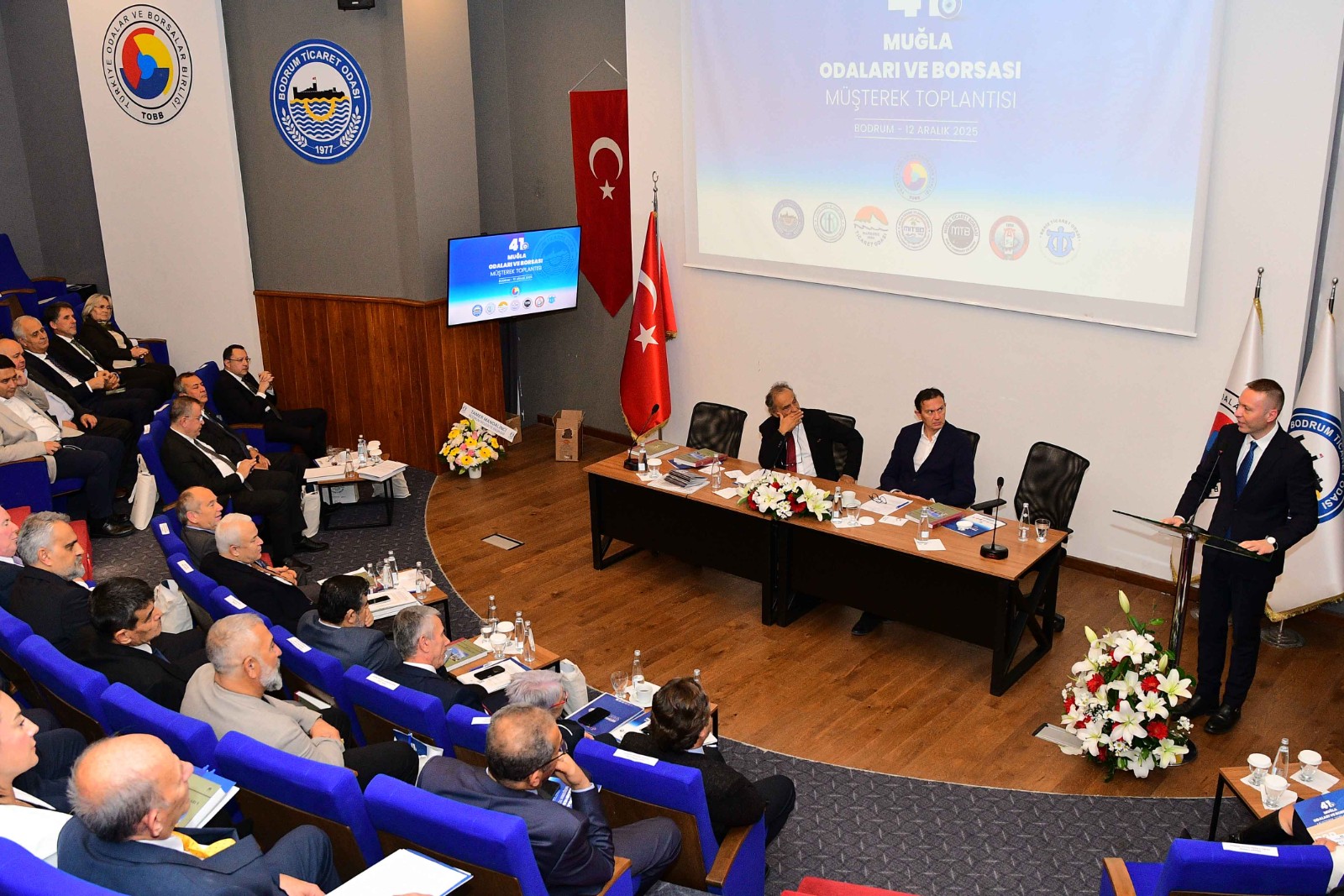 Bodrum Ticaret Odası (BODTO) Meclis Başkanı İlhan Ersan ve Yönetim Kurulu Başkanı Mahmut Serdar Kocadon’un ev sahipliğinde 12 Aralık 2025 Cuma günü BODTO Konferans Salonu’nda gerçekleştirilen Muğla Odaları ve Borsası 41’inci Müşterek Toplantısı’nda Muğla Milletvekili Süreyya Öneş Derici, Muğla Büyükşehir Belediye Başkanı Ahmet Aras, Muğla Valisi Vekili ve Bodrum Kaymakamı Ali Sırmalı, Bodrum Belediye Başkanı Tamer Mandalinci, Milas Kaymakamı Mustafa Ünver Böke, Muğla Kültür ve Turizm İl Müdürü Hüseyin Toprak, Muğla Planlama Ajansı (MUPA) Yönetim Kurulu Başkanı Tansu Özcan davetli olarak yer aldı.