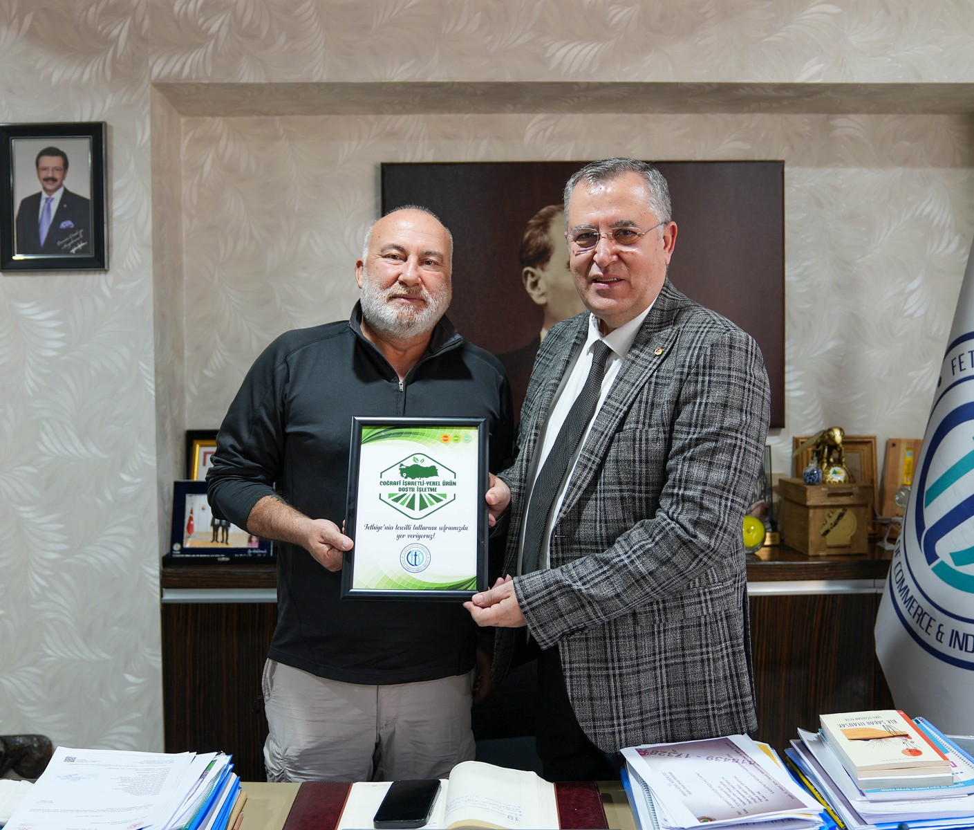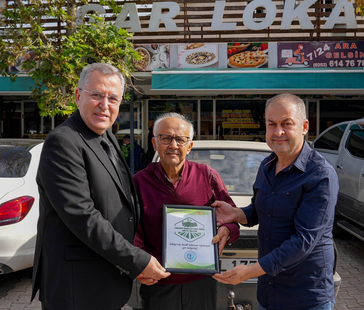 Fethiye ve Seydikemer’de coğrafi işaretli ve yerel ürünleri ön plana çıkararak, ürünlere olan talebi arttırmak için 1 Ekim 2025 tarihinde FTSO tarafından ‘Coğrafi İşaretli-Yerel Ürün Dostu İşletme’ kampanyası başlatıldı. Kampanya ile coğrafi işaret tescili yapılmış Fethiye Tahini, Fethiye Kaya İnciri ve Fethiye Tarhanası ile başvuru süreci devam eden Kuzugöbeği mantarı, Nif Kirazı, Arsa Üzümü, pembe domates, Bekçiler Patatesi ve nerdek gibi ürünler başta olmak üzere, bölgemizde yetişen yerel ürünleri müşterilerinin beğenisine sunan işletmelerin ön plana çıkarılması hedeflendi. Kampanya kapsamında yapılan çağrının ardından FTSO Yönetim Kurulu Başkanı Osman Çıralı, coğrafi işaretli-yerel ürün kullanan işletmeleri ziyaret ederek belgelerini takdim etti. İlk etapta 17 işletmeyi ziyaret ederek belgelerini veren Başkan Çıralı, 20 işletmeye daha ‘Coğrafi İşaretli-Yerel Ürün Dostu İşletme’ belgesini takdim etti. Başkan Çıralı belgelerin ve beraberindeki etiketlerin işletmelerin görünür yerlerinde sergilenmesi ricasını ileterek yerel kalkınmaya ve gastronomi turizmine yaptığı katkılardan dolayı işletme sahiplerine teşekkür etti.