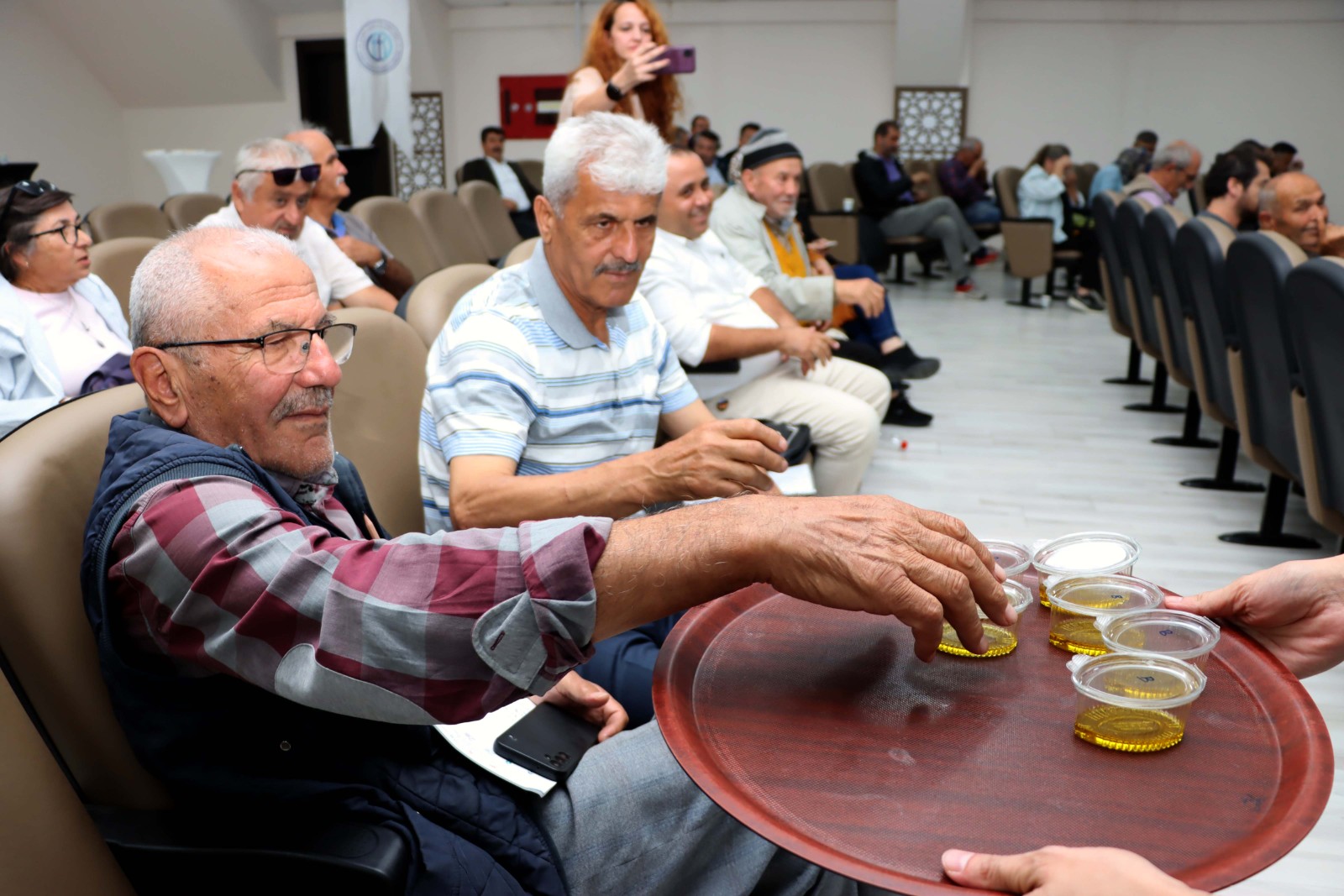 Gıda Yüksek Mühendisi Dr. Didar Sevim de kalitemi zeytin ve zeytinyağı üretimi için doğru hasat ve sıkım konusunda katılımcılara bilgi vererek, katılımcılara zeytinyağı tadımı yaptırdı.