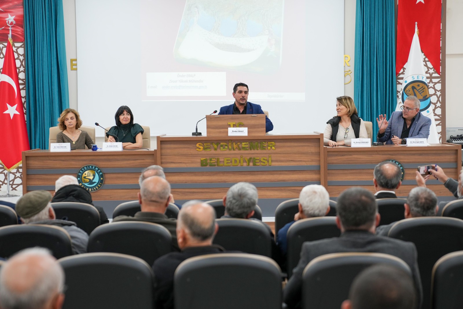 Seydikemer ve Fethiye’de kaliteli zeytin ve zeytinyağı üretimi için yapılması gereken bilimsel uygulamaların ele alındığı panel, 18 Şubat 2026 tarihinde Seydikemer Belediyesi Konferans Salonu’nda yapıldı. Seydikemer ve Fethiye’den zeytin ve zeytinyağı üreticilerinin yoğun katılımıyla gerçekleşen panelde, İzmir Zeytincilik Araştırma Enstitüsü’nden Ziraat Yüksek mühendisleri Önder Eralp, Dr. Nurengin Mete, Dr. Tülin Pekcan, Dr. Nuray Körükmez ve Gıda Yüksek Mühendisi Dr. Didar Sevim konuşmacı olarak yer aldı.